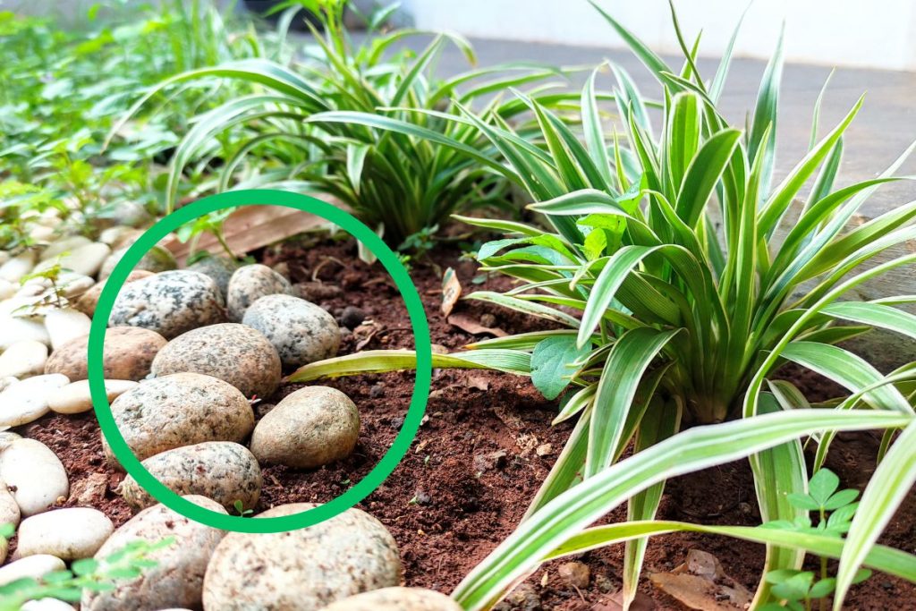 Além disso, os seixos ajudam a manter a umidade do solo, sendo uma opção sustentável e de baixo custo para o paisagismo.