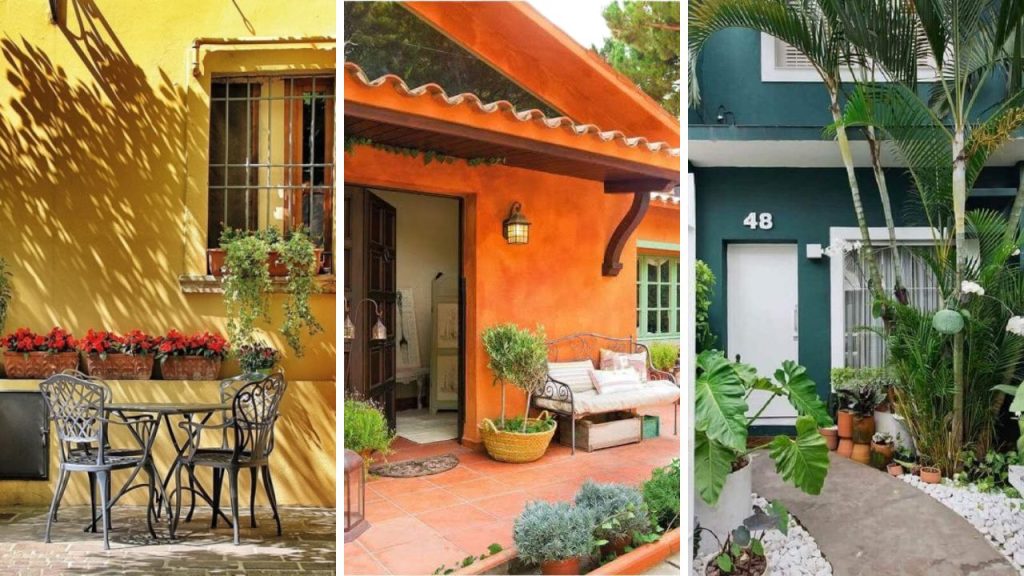 - Portas coloridas: escolha tons contrastantes, como verde selvagem em uma fachada branca.