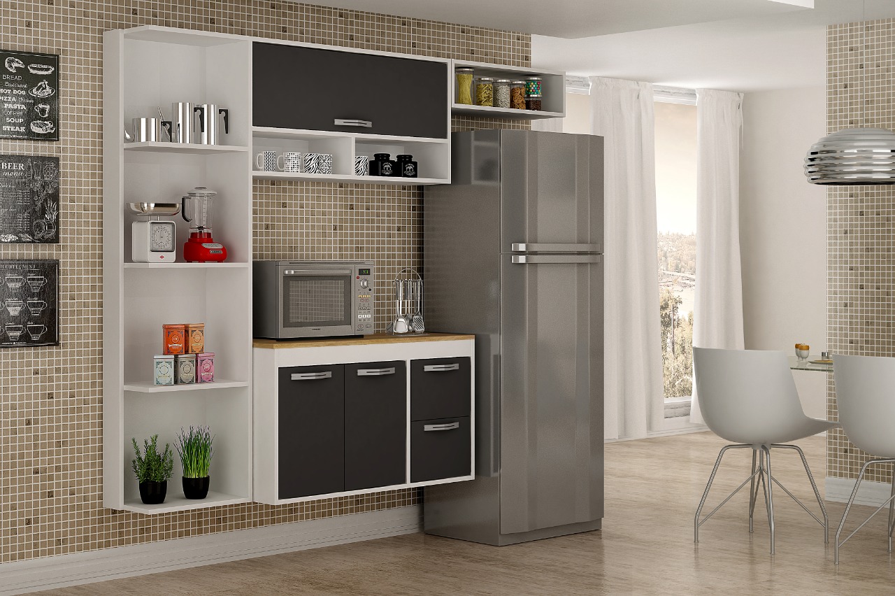 O armário de cozinha é um aliado na organização desse espaço! Ele permite armazenar e manter escondidos alimentos e utensílios domésticos.