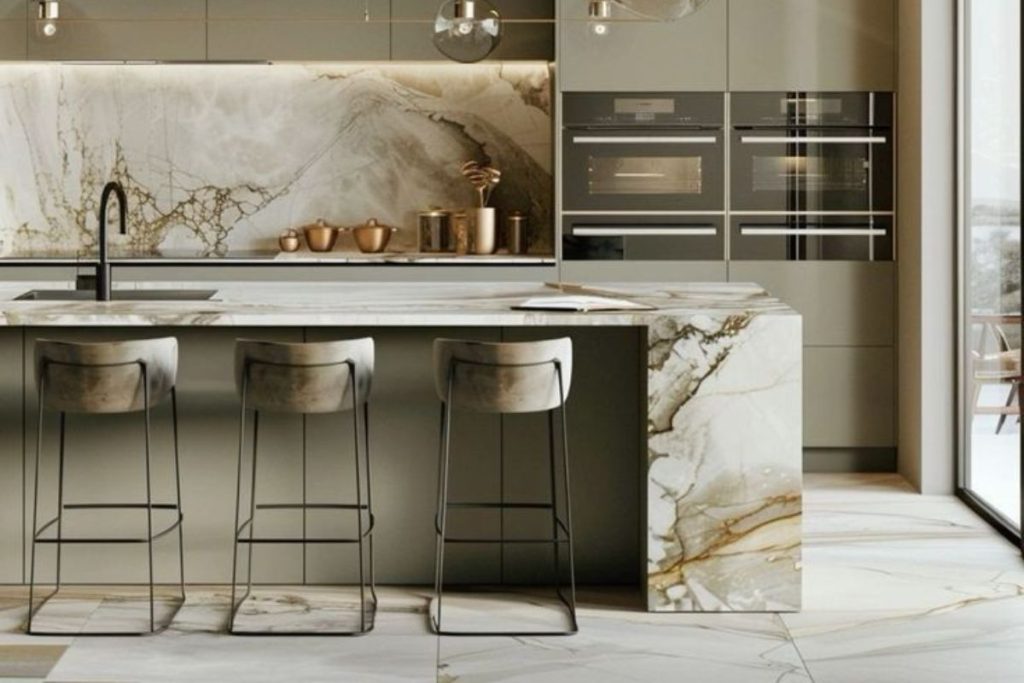 Outra tendência interessante é o uso de mármore com veios bem definidos e contrastantes. Esses veios podem ser pretos, dourados ou até verdes, adicionando um elemento de destaque ao balcão.