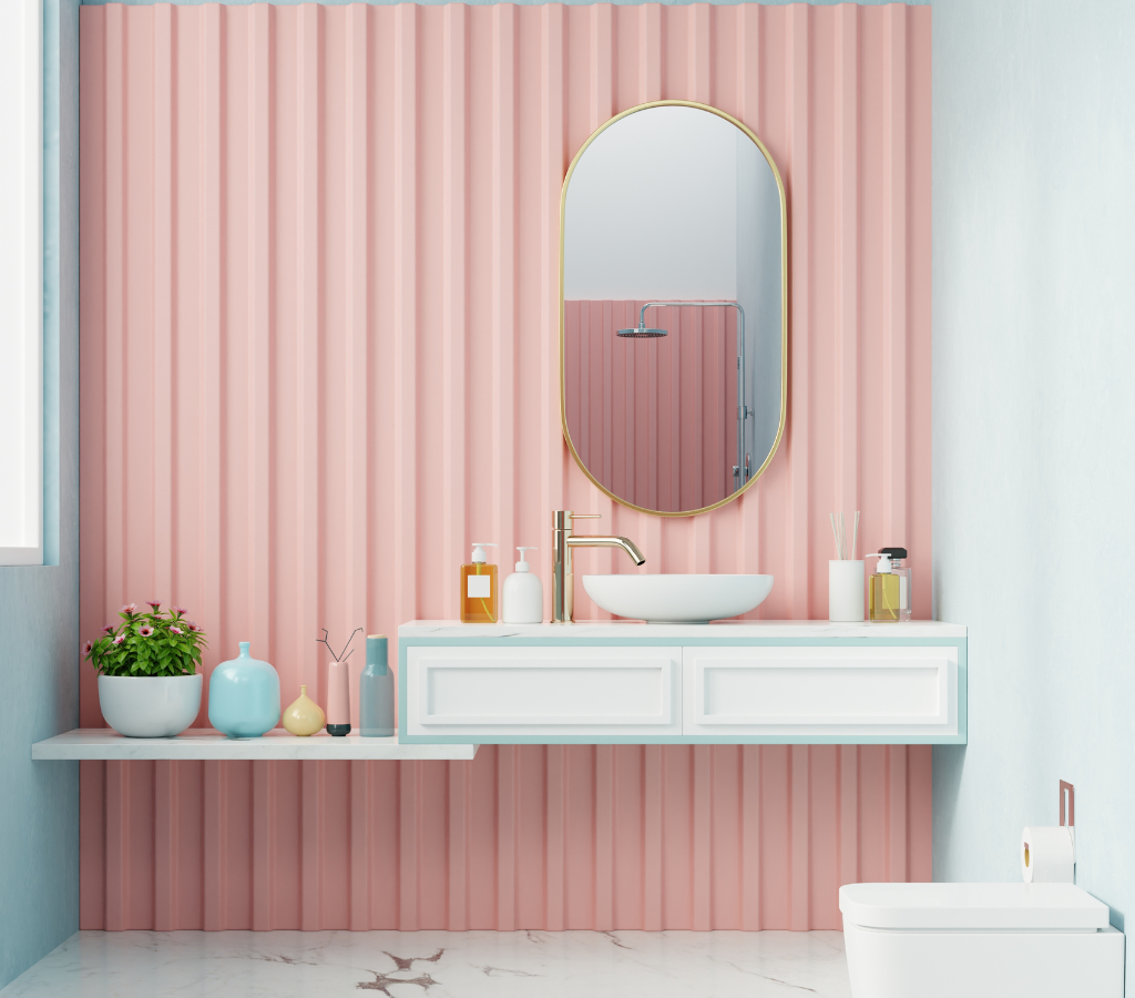 A força do rosa e do verde entre as cores nos banheiros modernos