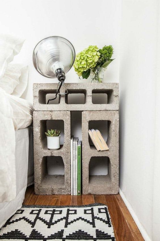 A mesa de cabeceira pode ser criada apenas com blocos, utilizando diferentes dimensões.