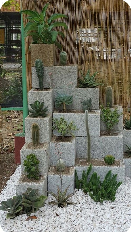 Construa canteiros elevados para hortas ou jardins usando os blocos como base. Mesclar entre os diferentes tipos de blocos é uma ótima ideia neste caso, pois assim criamos diferentes volumetrias, gerando um resultado estético super bacana.