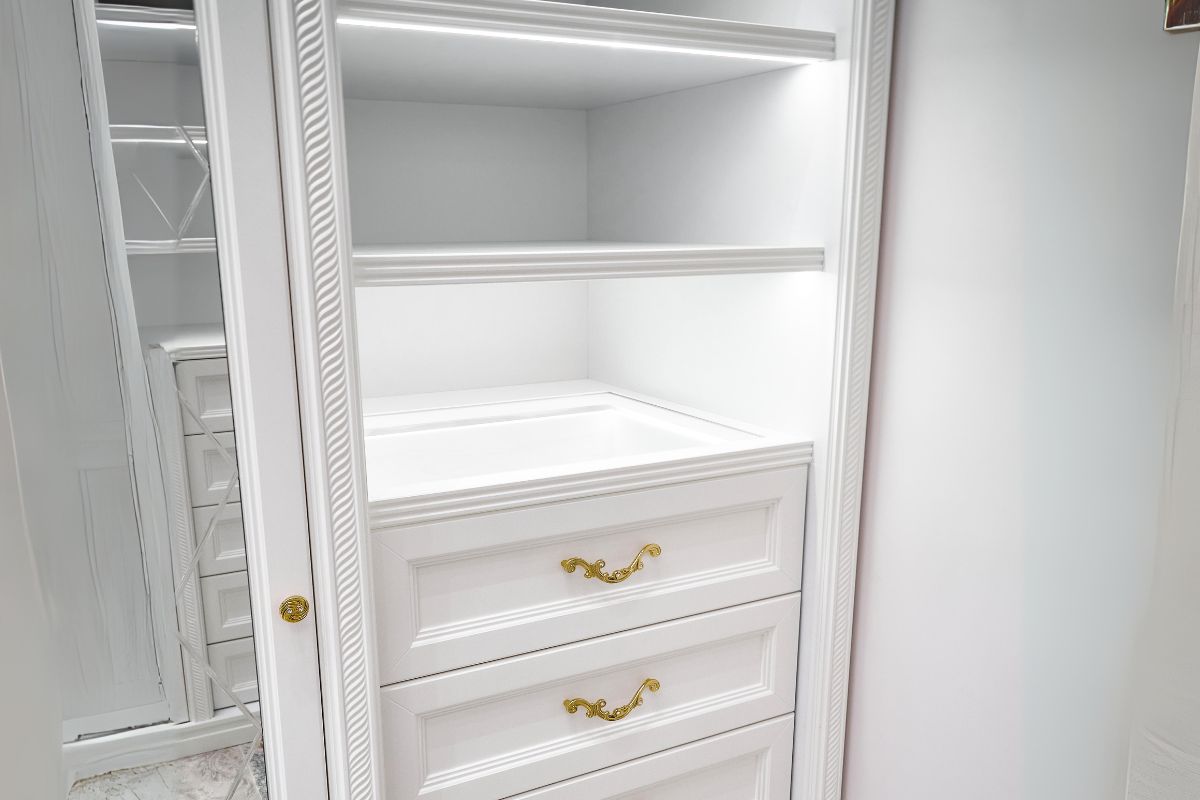 A primeira dica para organizar closet pequeno é investir em prateleiras e nichos. Eles são perfeitos para aproveitar a altura do seu closet, permitindo que você organize roupas, sapatos e acessórios de maneira eficiente.
