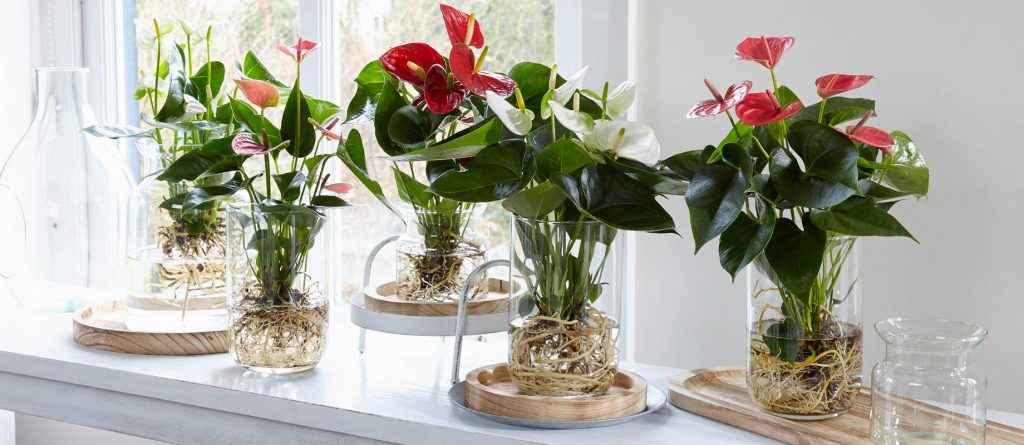 Cultivar antúrio na água permite que ele fique tanto em ambientes internos quanto externos, desde que você os proteja de condições adversas.