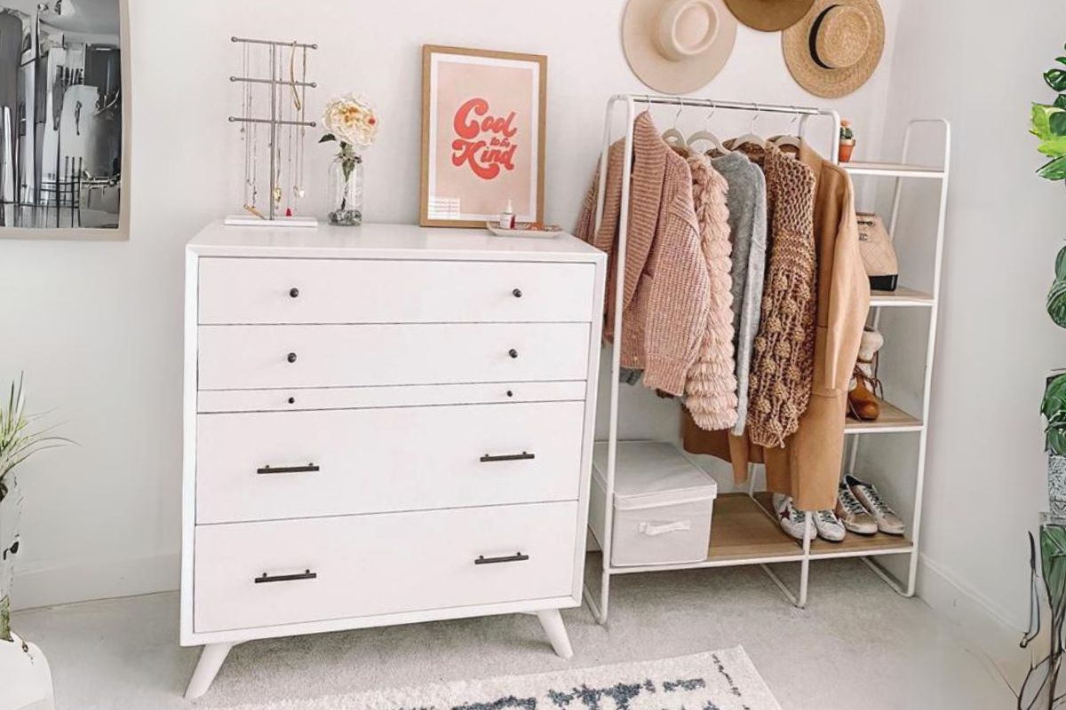 Uma cômoda é um móvel extremamente versátil que pode servir como base para seu closet improvisado.