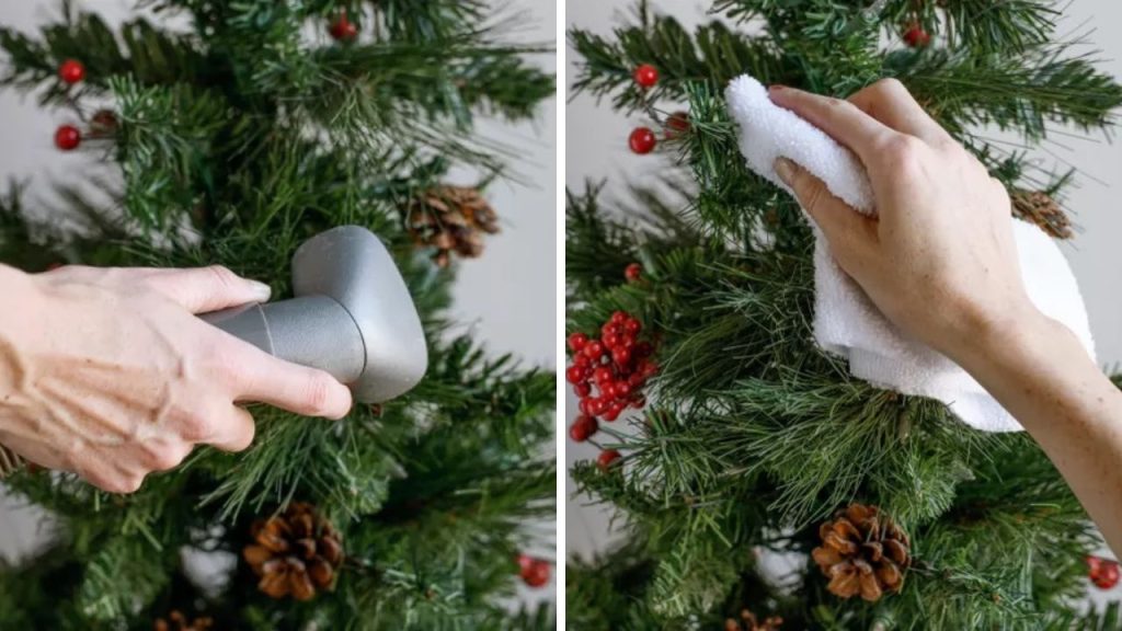 Se a árvore de Natal foi guardada sem ser limpa na última temporada, é essencial fazer uma limpeza antes de decorá-la.