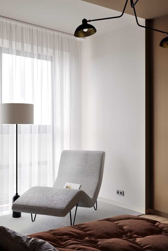 O importante é que esta iluminação seja aconchegante – use sempre luz amarela – e de preferência direcionável para que o usuário possa movimentá-la conforme sua necessidade, seja ela descanso ou leitura, por exemplo.