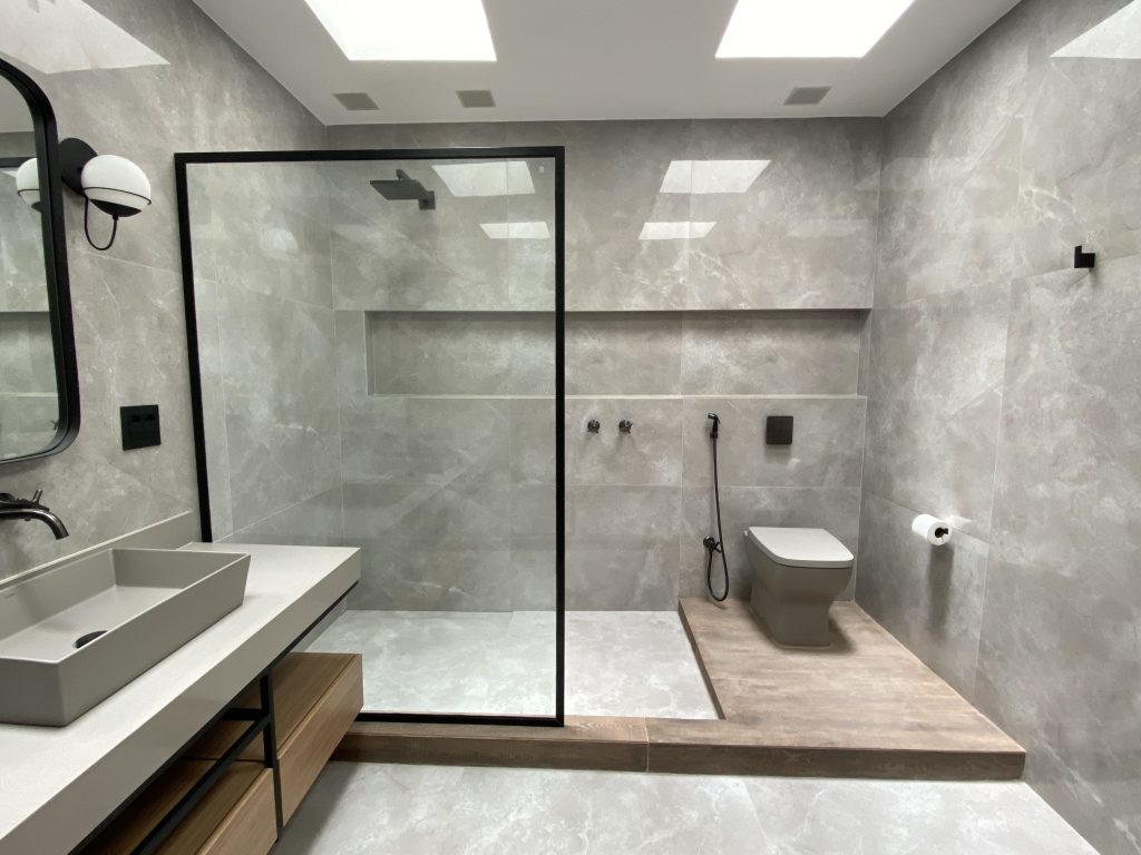 Banheiro preto e cinza