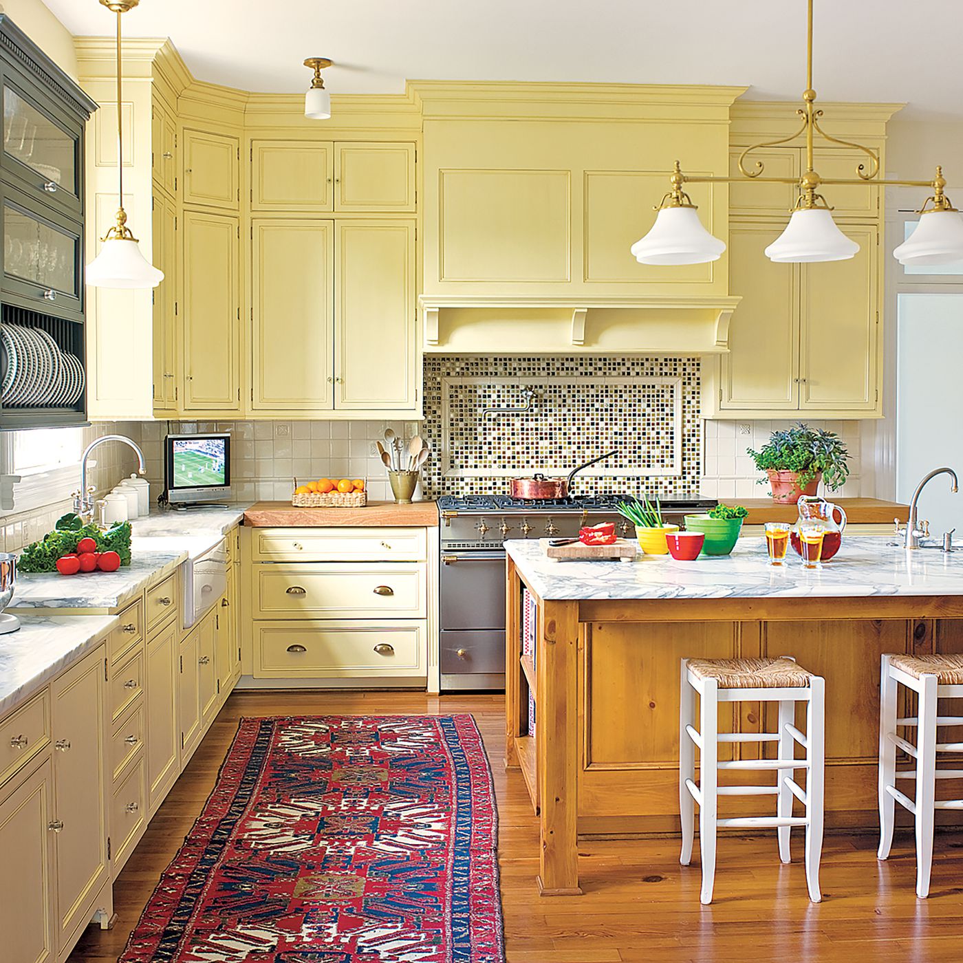 Se quer sair levemente do branco, que tal um cinza-esverdeado pálido nos armários? Outra ideia é que, se você tem uma ilha de cozinha, você pode destacar o cômodo com um azul-celeste.