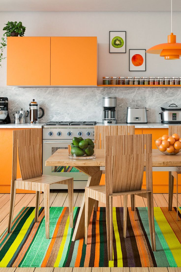 Moderna, elegante e estimulante: essa é a ideia do laranja como cor principal da cozinha.
