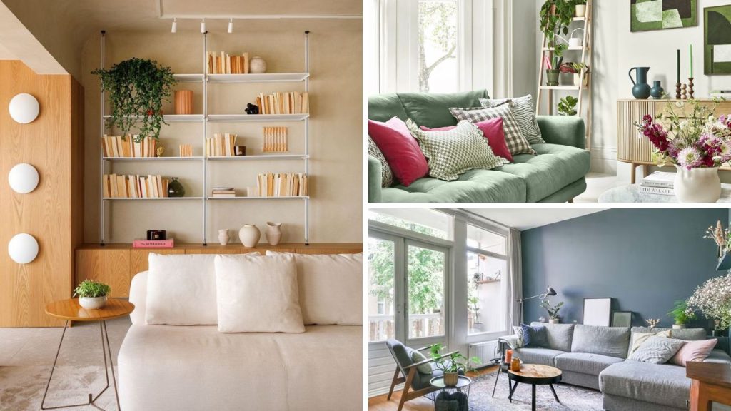 Os tons de branco e off-white continuam a ser uma escolha popular para a sala de estar em 2025.