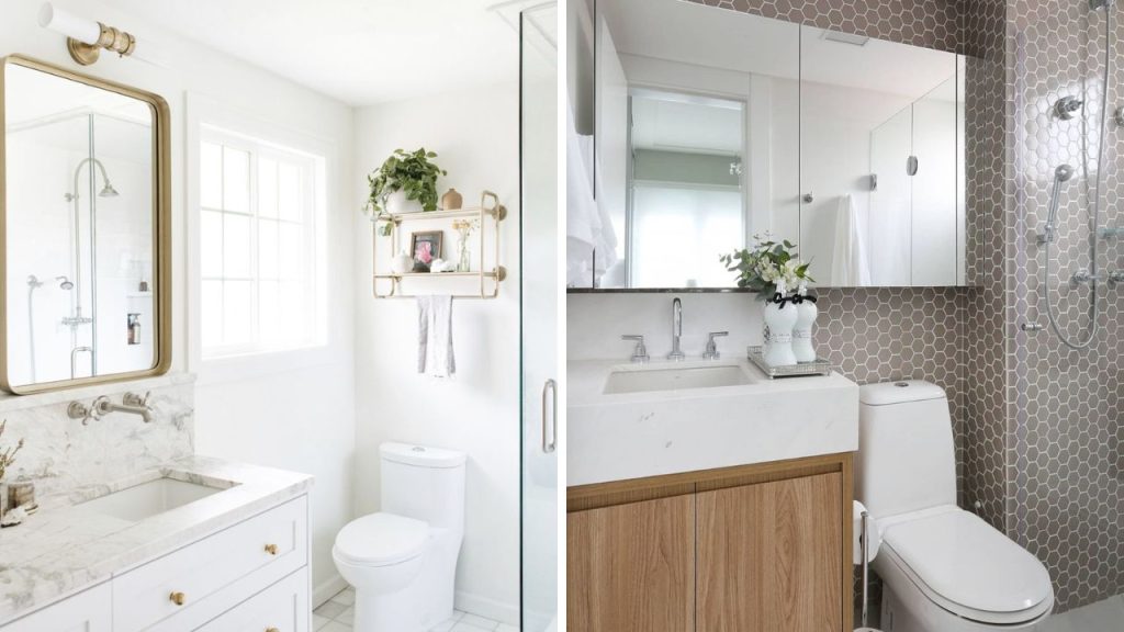Para banheiros menores, a recomendação é usar esses tons como detalhes ou em acessórios, deixando que as paredes e superfícies principais mantenham uma cor mais clara e neutra, favorecendo uma sensação de amplitude.