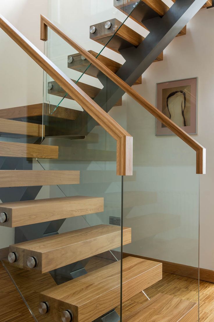 A combinação do vidro transparente com a madeira dá um visual leve e arejado ao cômodo, ideal para espaços pequenos ou escadas em áreas de passagem. Além de ser seguro, o vidro permite a passagem de luz, o que pode ajudar a iluminar escadas internas.
