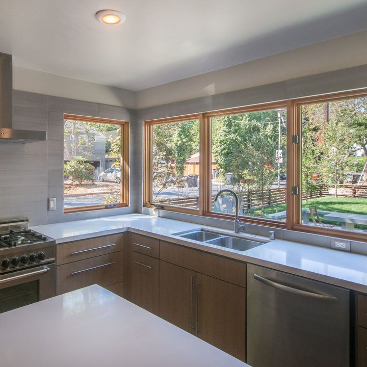 Para casas maiores, especialmente aquelas com vistas privilegiadas, a janela sobre a pia pode se tornar um ponto focal da cozinha, destacando-se na decoração.