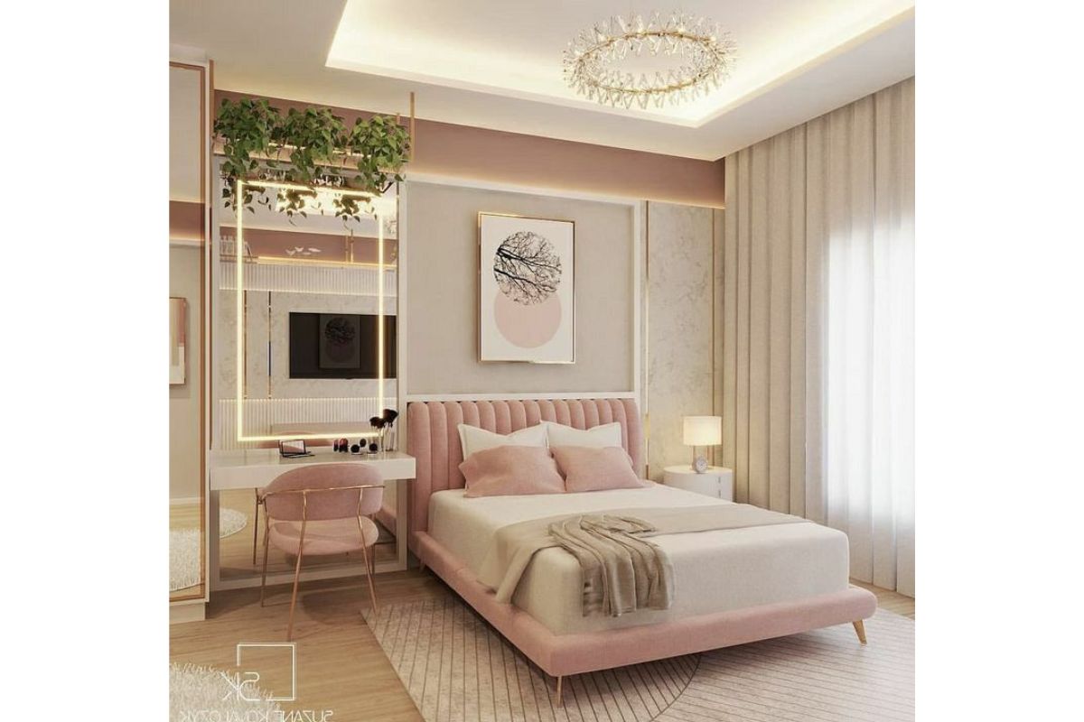 Crie um refúgio romântico usando cores suaves como lavanda, rosa pálido e bege.