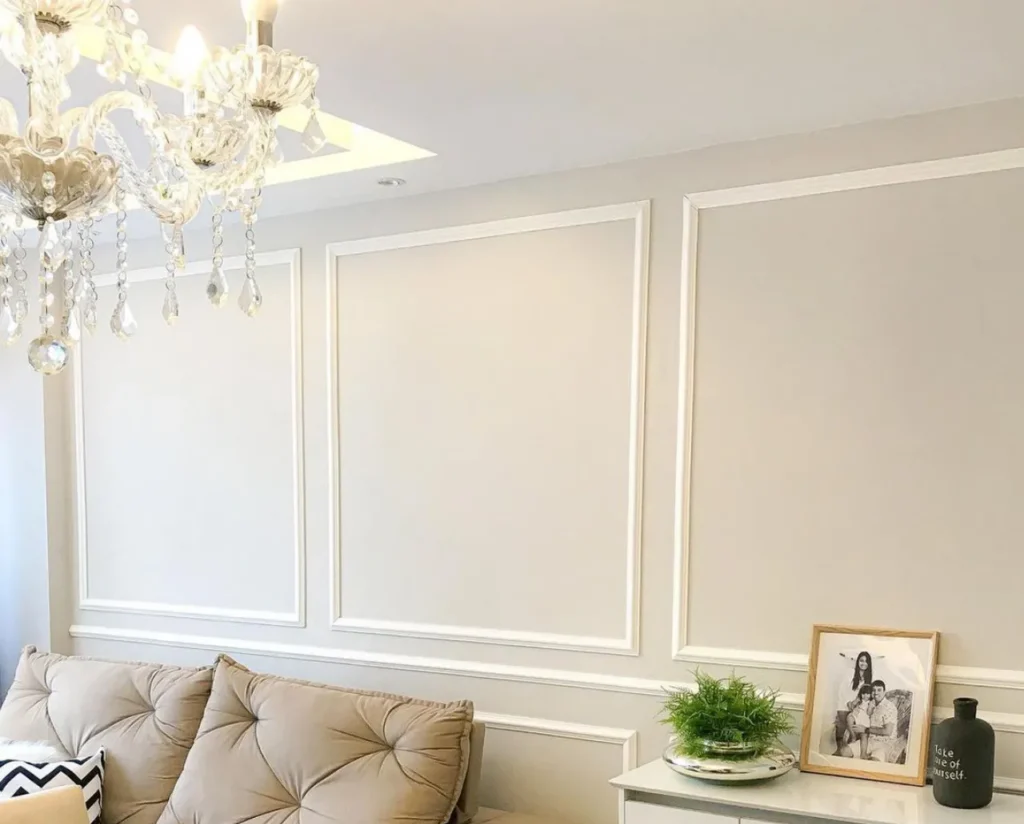 A boiserie é uma moldura de origem francesa colada na parede. Ela pode ser usada em toda a superfície ou em somente uma parte dela, ajudando a criar um efeito bonito e elegante para a decoração.