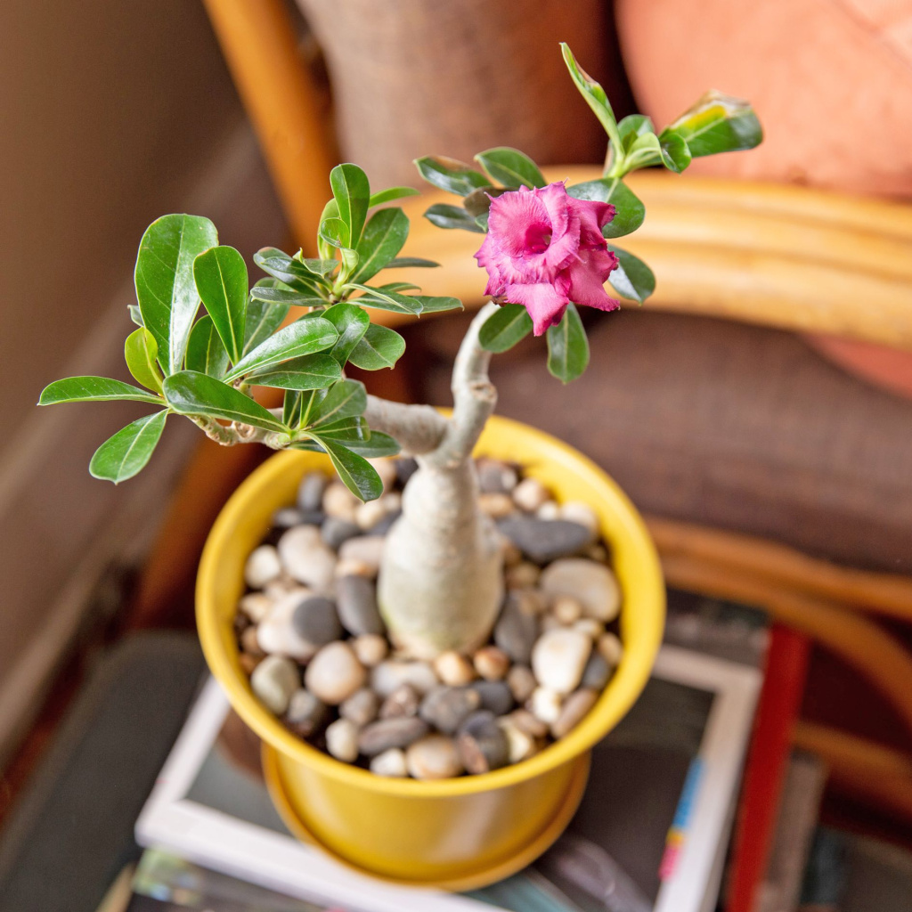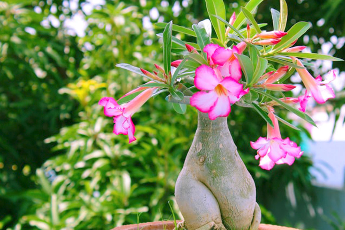 A rosa-do-deserto é tóxica. Ao podar ou manipular raízes e galhos, use luvas de proteção. Mantenha fora do alcance de crianças e animais domésticos.