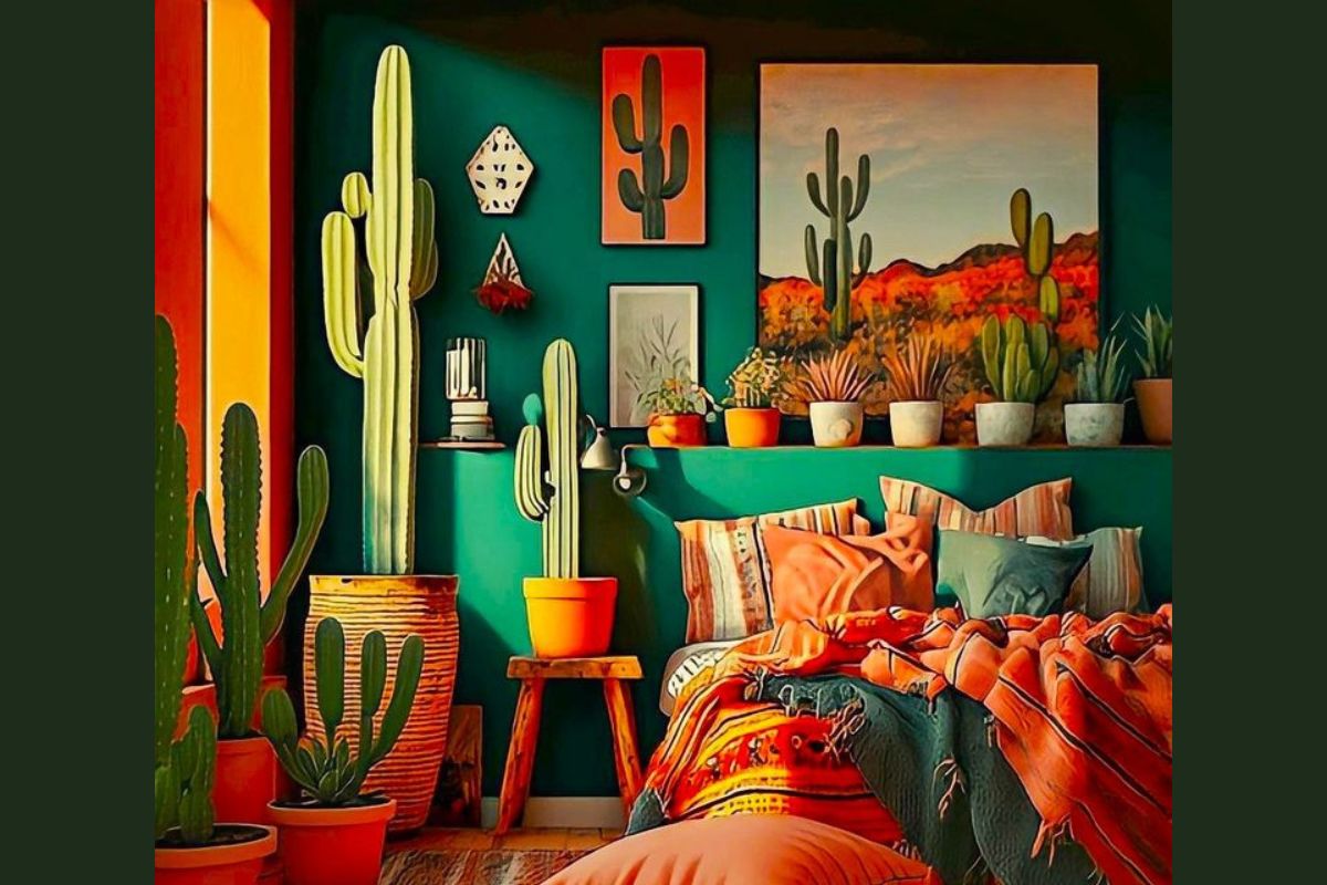 Os cactos não apenas adicionam um toque de natureza à decoração, mas também são símbolos da resistência e da força da cultura mexicana.