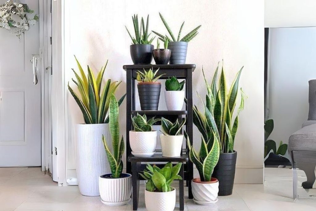 - Crie um jardim de texturas e alturas: aproveite a variedade de formas e tamanhos das espadas-de-São-Jorge para criar um jardim de texturas e alturas dentro de casa. Ao posicionar plantas de diferentes alturas juntas, você cria uma dinâmica visual que atrai o olhar e adiciona profundidade ao espaço.
