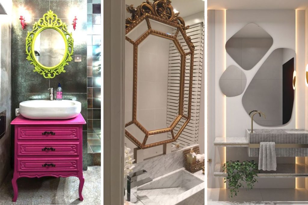 Aqui estão sete modelos de espelho lindos que podem servir de inspiração para você encontrar o que mais combina com o seu estilo, dando ainda mais personalidade para o seu lavabo.