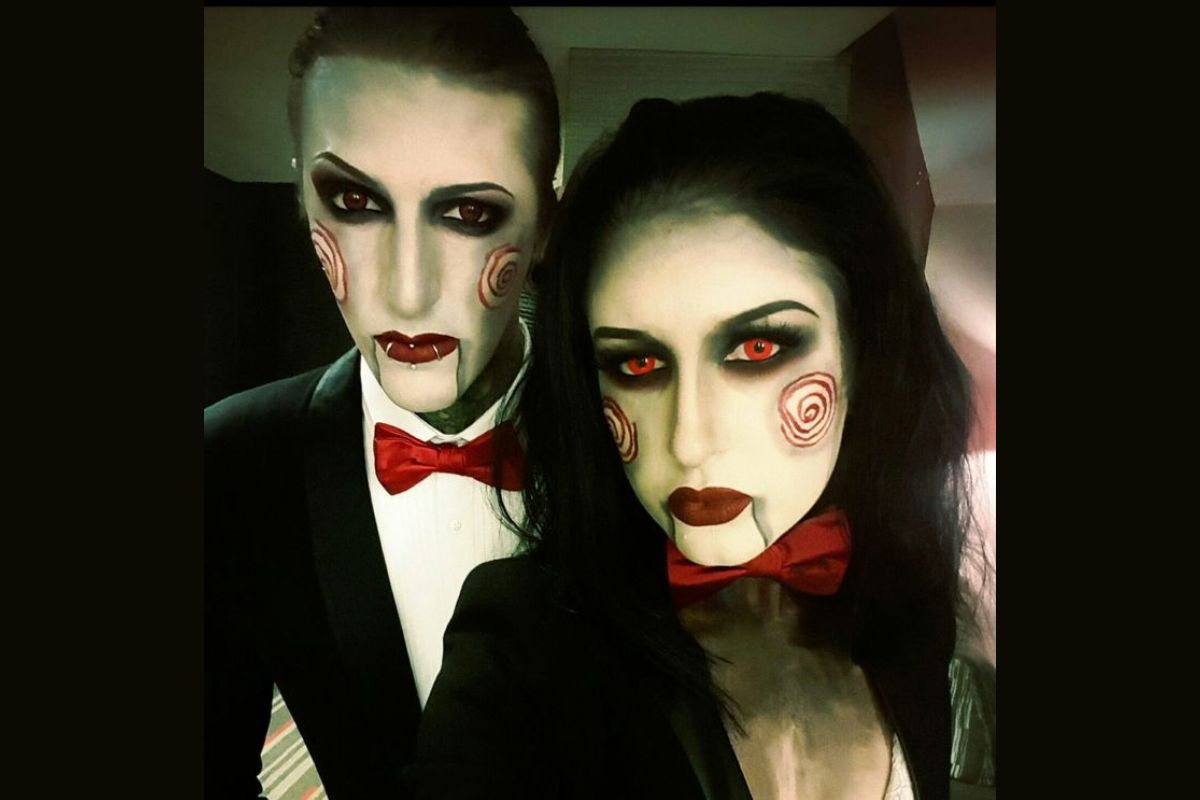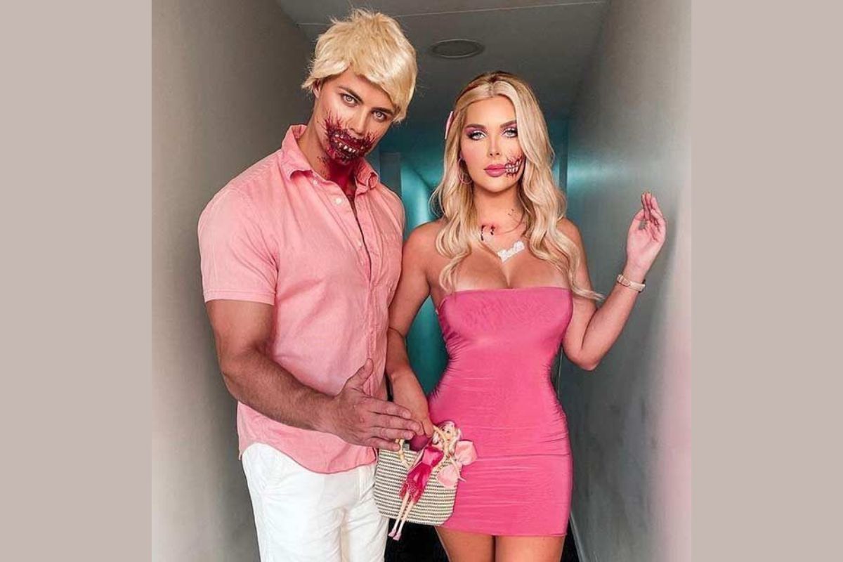 Para criar essa fantasia, pegue um vestido de Barbie e um traje de Ken, mas maquie-se com tons escuros, ou faça uma produção zumbi, ou como caveiras. O contraste entre a aparência inocente e os toques sinistros torna essa fantasia intrigante e única.