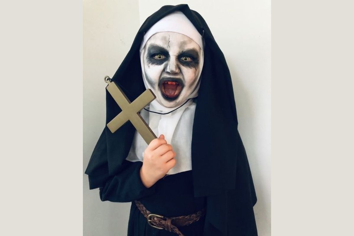 A freira do mal é uma fantasia que continua a assombrar os corredores das festas de Halloween. Inspirada em filmes de terror como “Invocação do Mal,” essa fantasia é uma escolha sólida para quem busca causar arrepios.