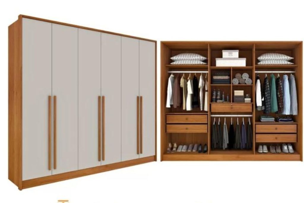 Outro item que integra de forma destacada a promoção é o guarda-Roupa de casal Ilheus Premium da Espresso Móveis.