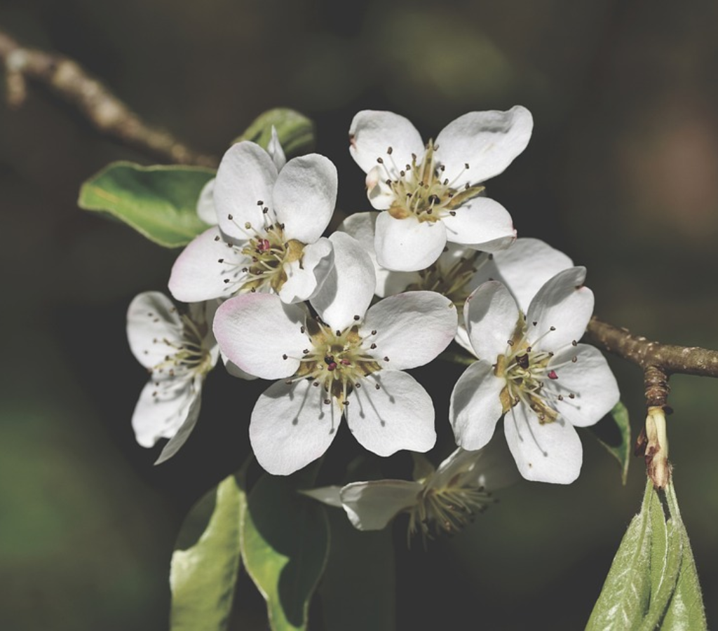 As flores da pereira liberam um aroma que pode ser repelente para algumas pessoas, pois possuem um odor forte, pouco agradável.