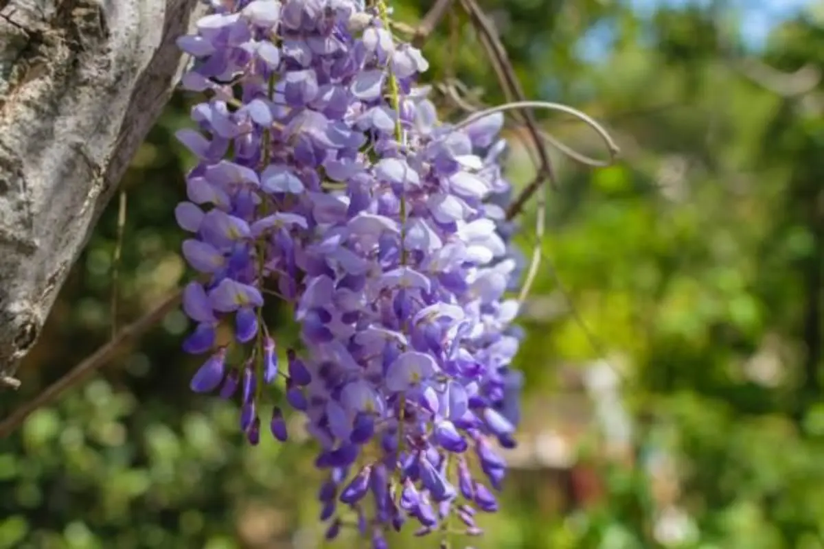 Os ramos da glicínia tombam, garantindo um efeito pendente para a planta, como se estivesse chovendo flores. Por isso, essa espécie também é muito utilizada em projetos ornamentais.