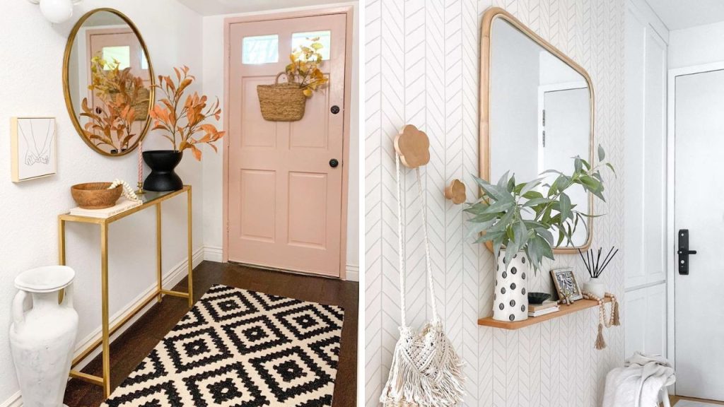 Além disso, ele amplia o espaço visualmente e reflete a luz, o que é ótimo para entradas menores ou mais escuras.