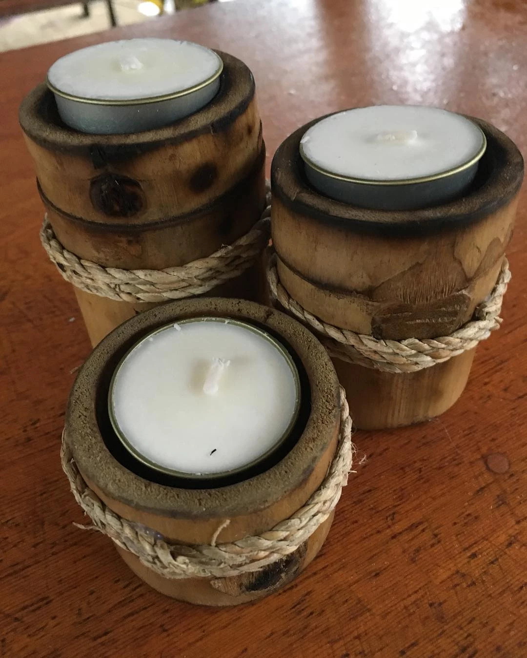 Reinvente a atmosfera do seu ambiente com porta-velas de bambu. Esse conceito, além de inovador, exala sofisticação, pois a suavidade da chama da vela contrasta com a solidez do bambu, resultando em um objeto decorativo que transmite calma e aconchego.