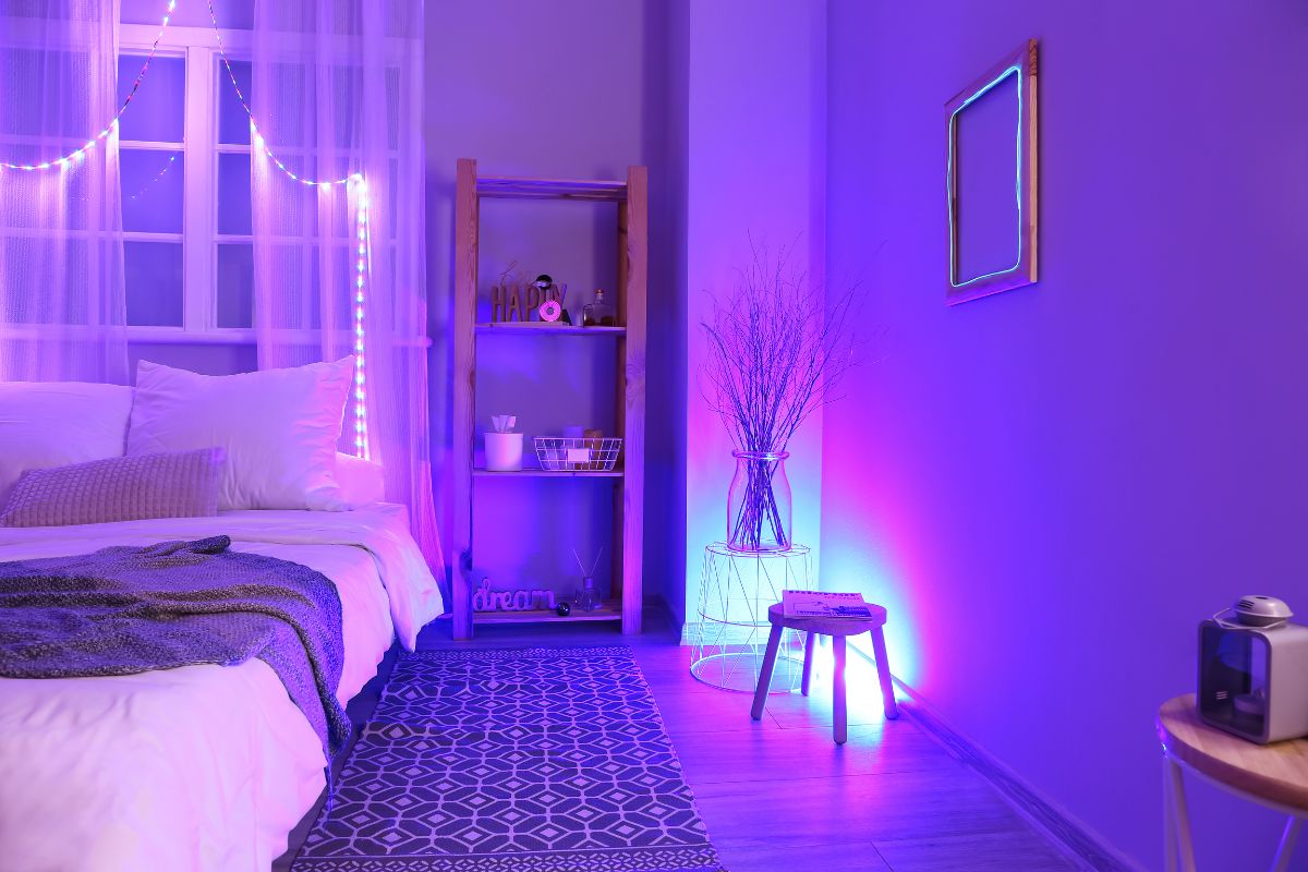Para aqueles fascinados por cores e seus efeitos no humor, as lâmpadas e fitas de LED RGB permitem uma personalização das tonalidades das paredes dos cômodos, podendo ser um primeiro passo para o início de uma cromoterapia em casa.