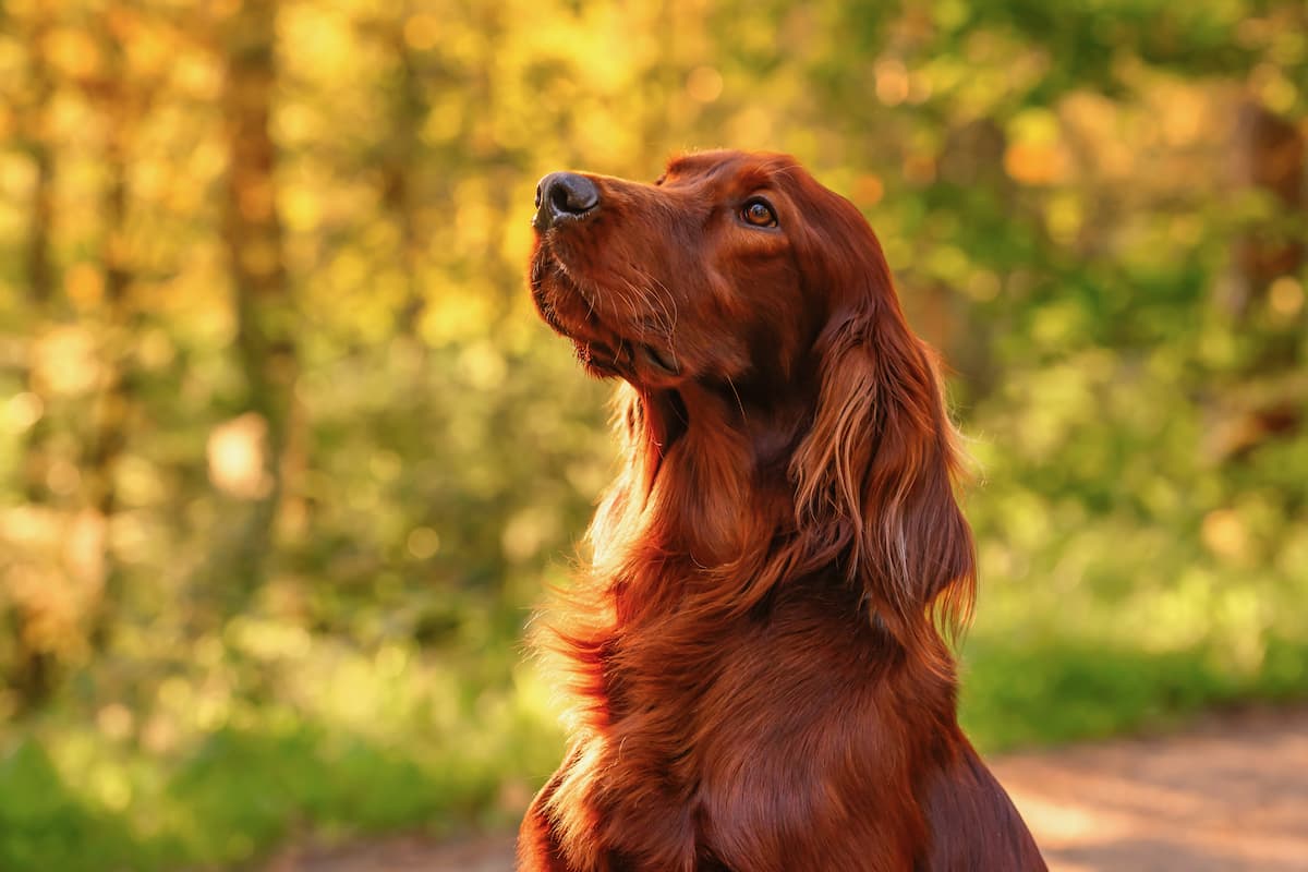 O setter irlandês é um cachorro cheio de energia, que gosta de correr e brincar em espaços abertos. Ele é veloz e atlético, não é perigoso e não é bagunceiro.