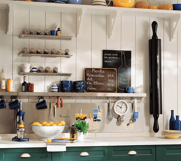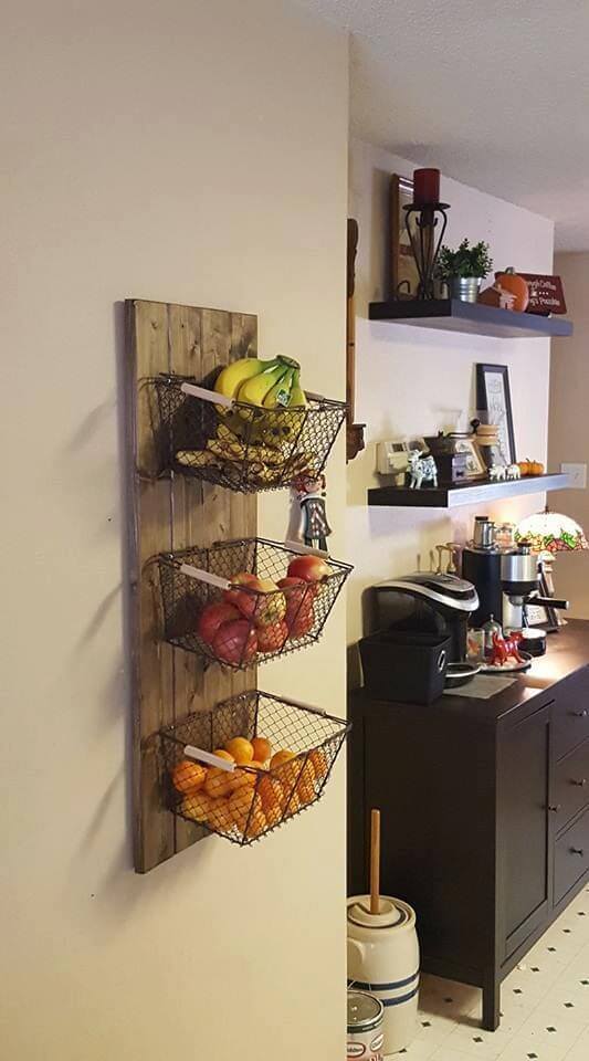 Lugar para guardar frutas é algo que pode faltar na cozinha. E – acredite- nem todas elas devem ser guardadas na geladeira. Por isso, você pode aproveitar algum espaço na parede disponível para pendurar uma estante, desde que fique bem à mão.