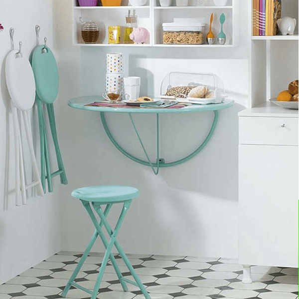 Nas lojas de móveis há uma série de possibilidades. Em cozinhas planejadas, por exemplo, as mesas dobráveis costumam sair de dentro dos armários. Outras, de material mais leve, podem ser retiradas de dentro de gavetas e armários quando o uso for necessário.