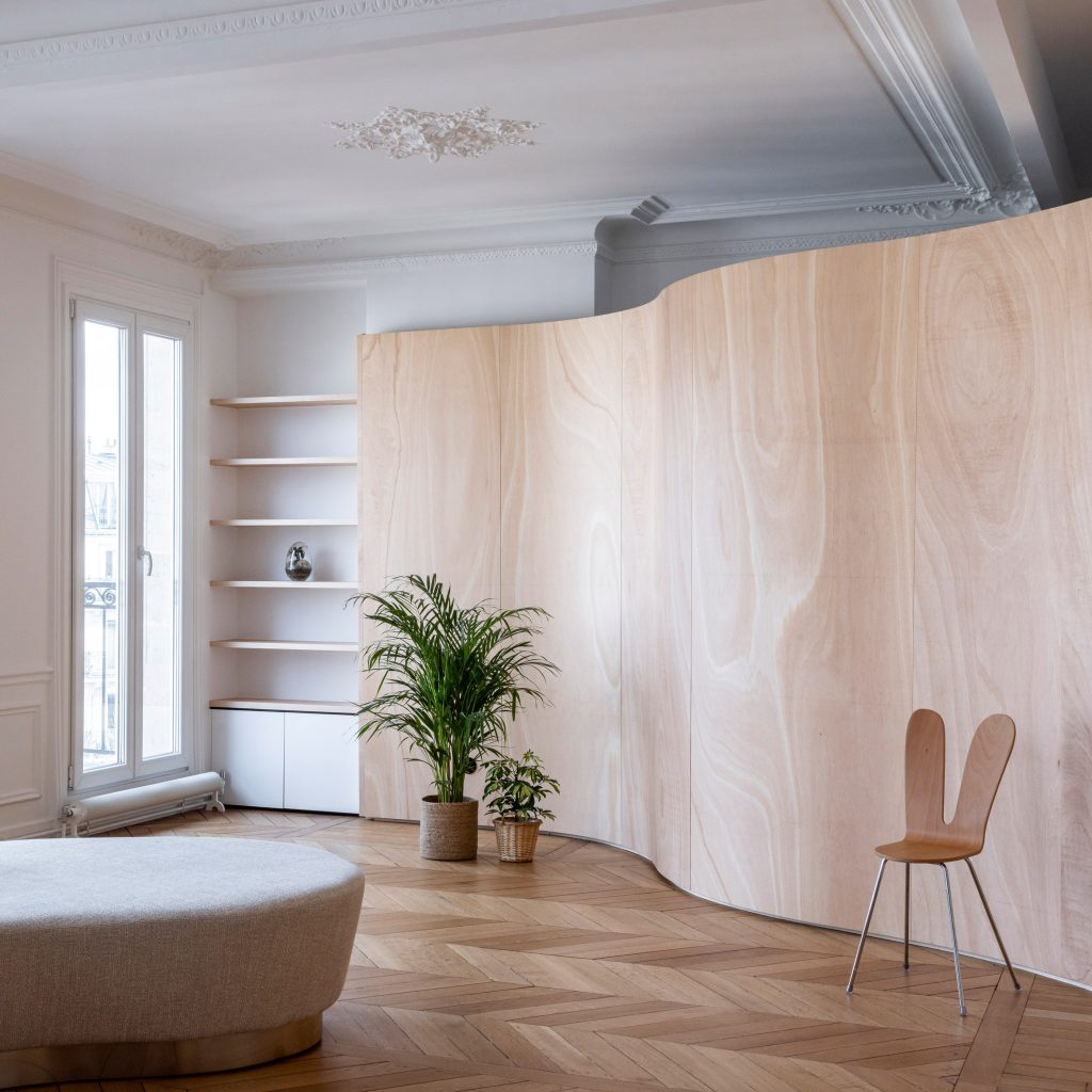Pode não parecer, mas também existe a possibilidade de utilizar revestimentos de madeira em paredes curvas. O grande diferencial dessa alternativa é que esse material dá textura ao ambiente e ainda complementa o lado mais orgânico da edificação, evidenciando as curvas.