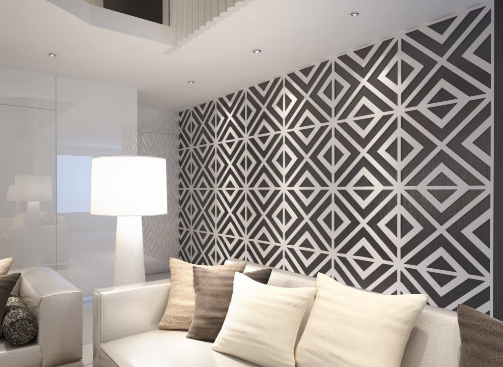 parede geométrica em sala de estar