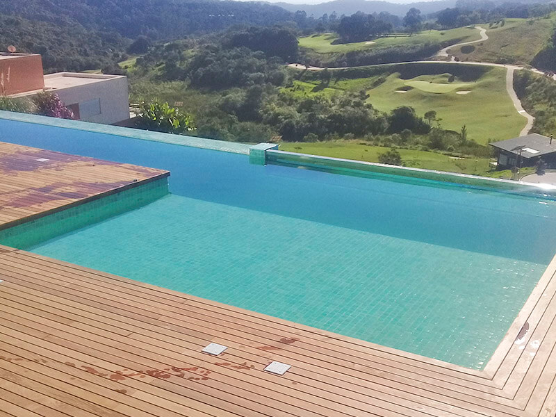 A piscina com borda infinita está virando uma tremenda febre entre as pessoas, que têm procurado informações para instalar essa novidade em suas casas e em condomínios. Muito comum em resorts e hotéis, o projeto desse tipo de piscina faz com que a água pareça que está se unindo à paisagem, já que suas bordas estão escondidas da visão. É daí, inclusive, que o nome surgiu como o conhecemos.