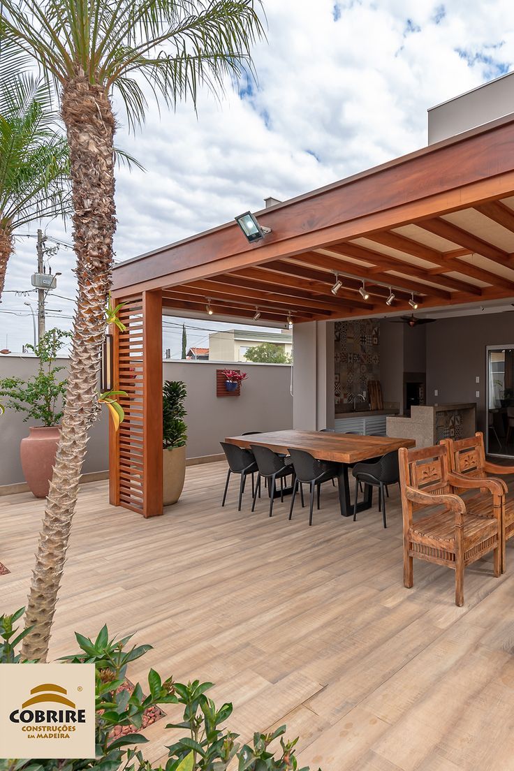 - Laminado: Uma excelente opção para quem busca um visual caloroso e acolhedor da madeira, com o benefício de ter uma manutenção menor. Os pisos laminados são práticos, mas menos resistentes à umidade que outros tipos de piso, o que não faz dele o mais indicado em áreas gourmet com piscina.