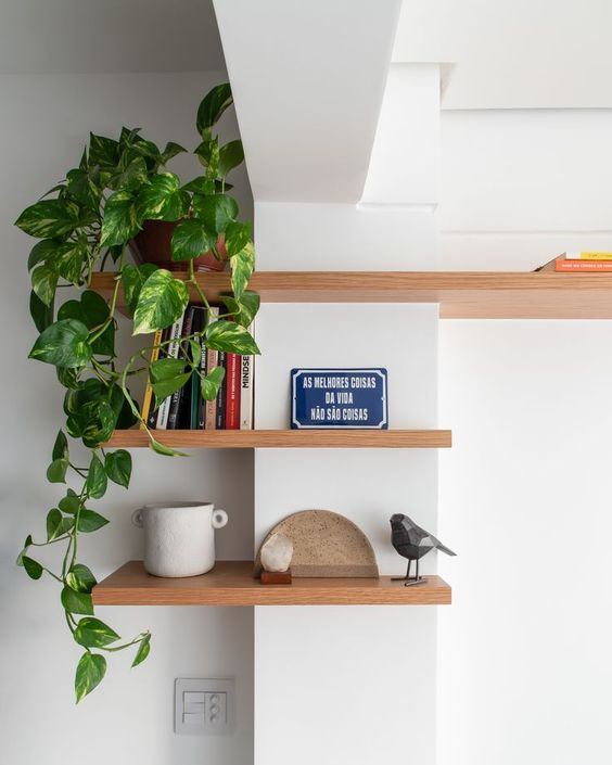 Outro motivo pelo qual utilizamos prateleira em um canto, é que elas podem tornar o ambiente mais leve.