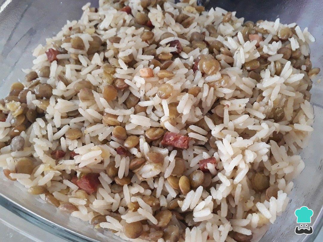 - Juntar o arroz, o caldo de carne, a água quente, a lentilha reservada, a pimenta e cozinhar até o arroz ficar totalmente cozido.