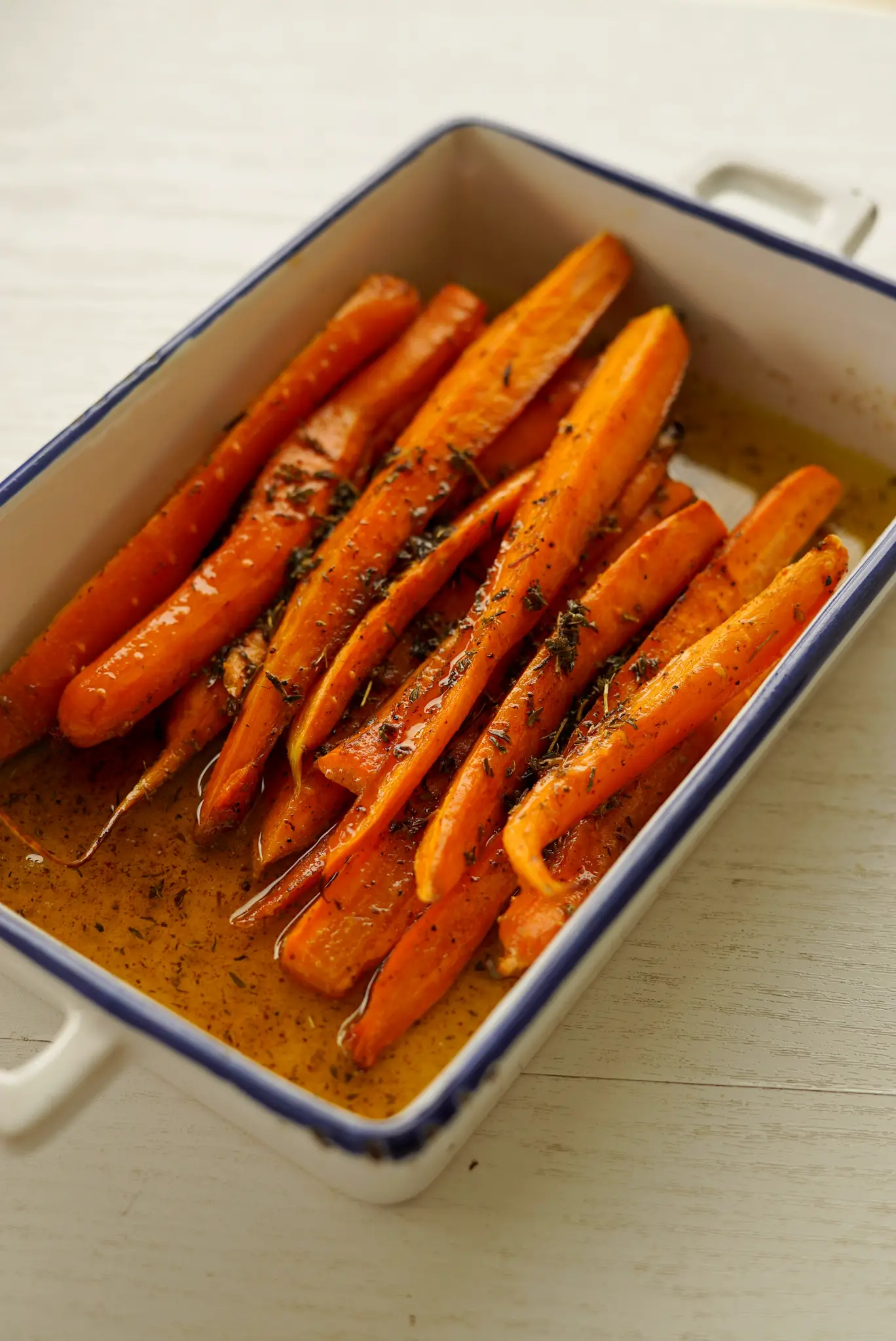 - Sirva as cenouras assadas quentes como acompanhamento ou como uma opção de lanche saudável.