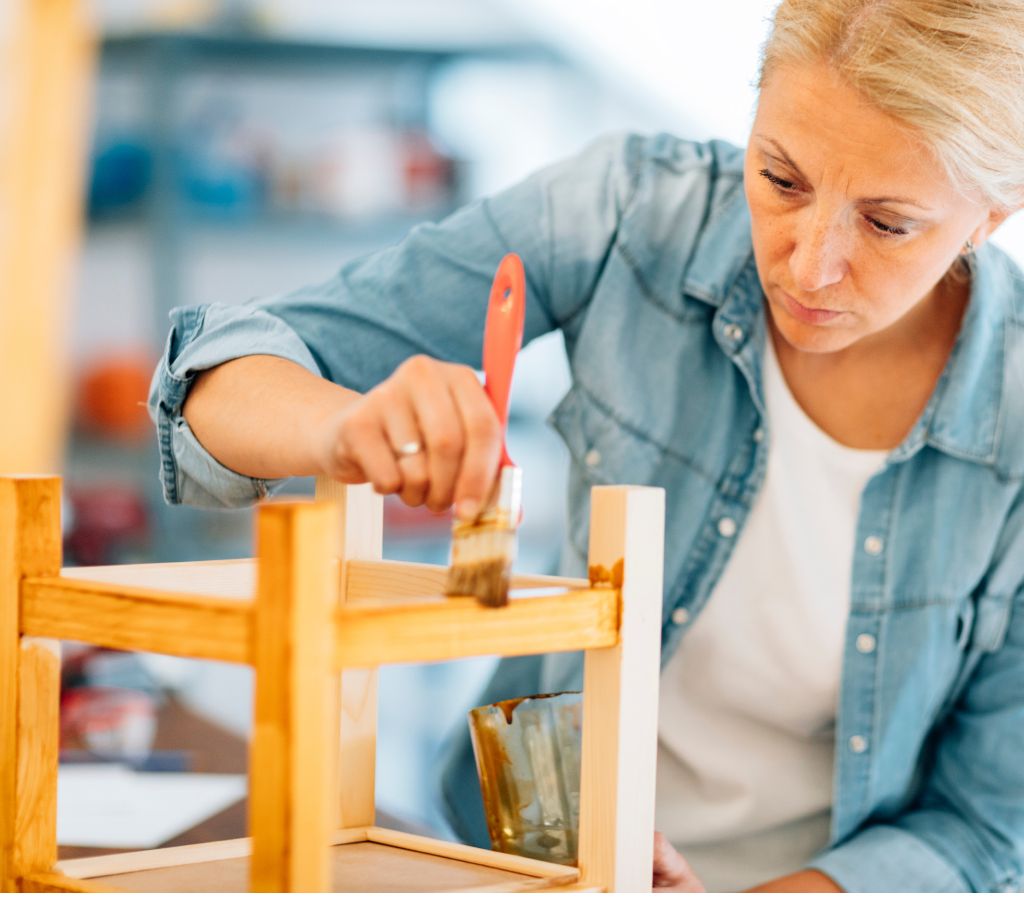 Outra possibilidade é dar vida nova a móveis antigos. Cadeiras, gavetas ou mesas podem ganhar padrões florais, geométricos ou mesmo texturas personalizadas.
