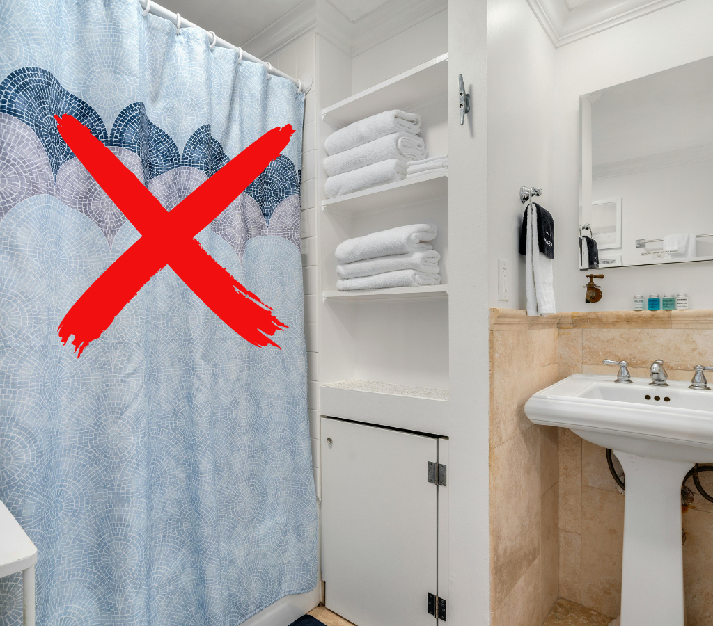 Cortinas de banheiro criam uma barreira visual que interrompe a continuidade do ambiente. A dica dos especialistas é investir em portas de vidro transparentes, que ampliam a área visível e deixam o espaço mais fluido.