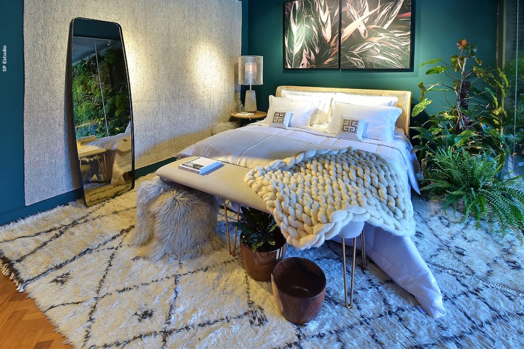 Já em quartos menores, o ideal é colocar um tapete ao lado da cama para oferecer conforto aos pés ao acordar.