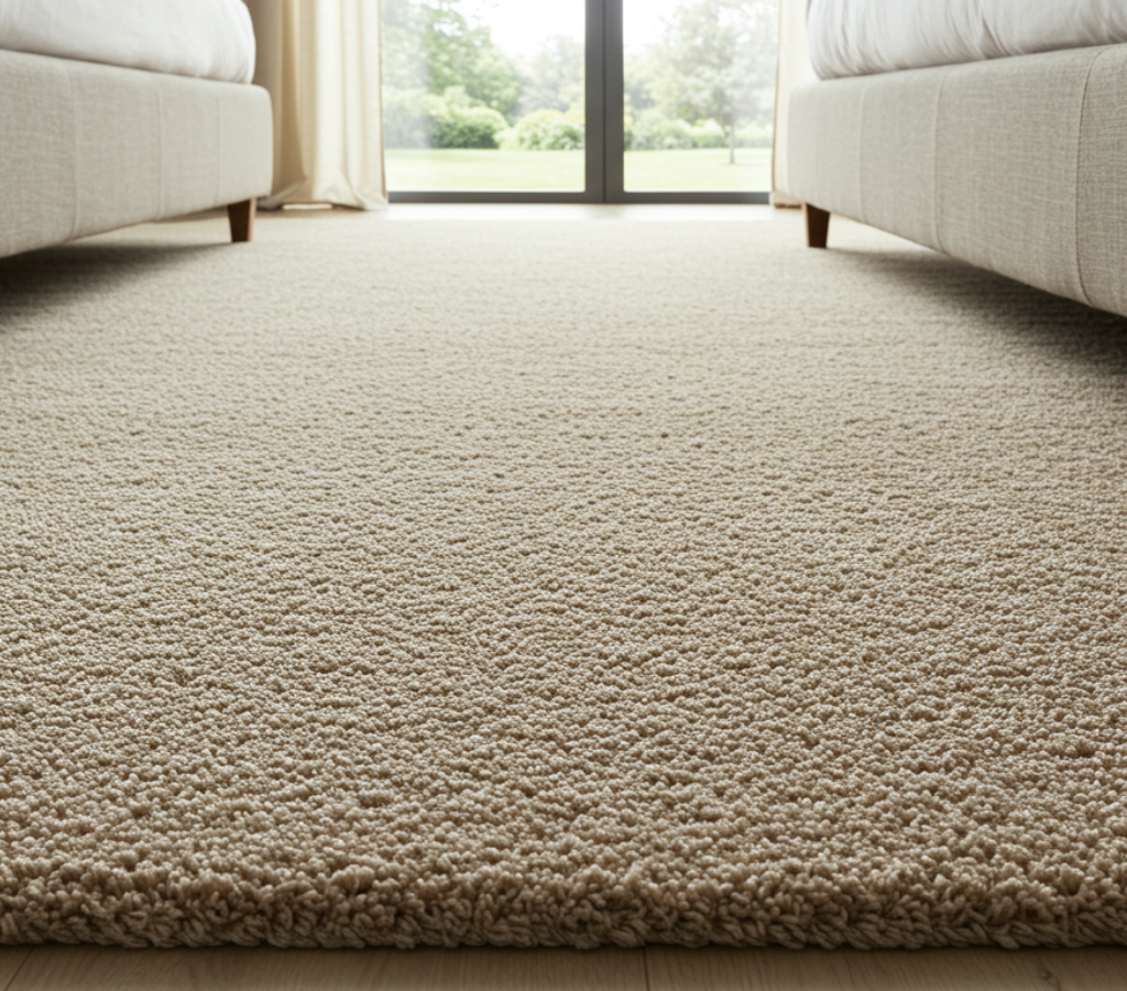 Já no caso da cama, a recomendação é que o tapete ocupe uma área ampla sob a cama, de forma que as extremidades do tapete fiquem visíveis mesmo quando a cama está em uso.