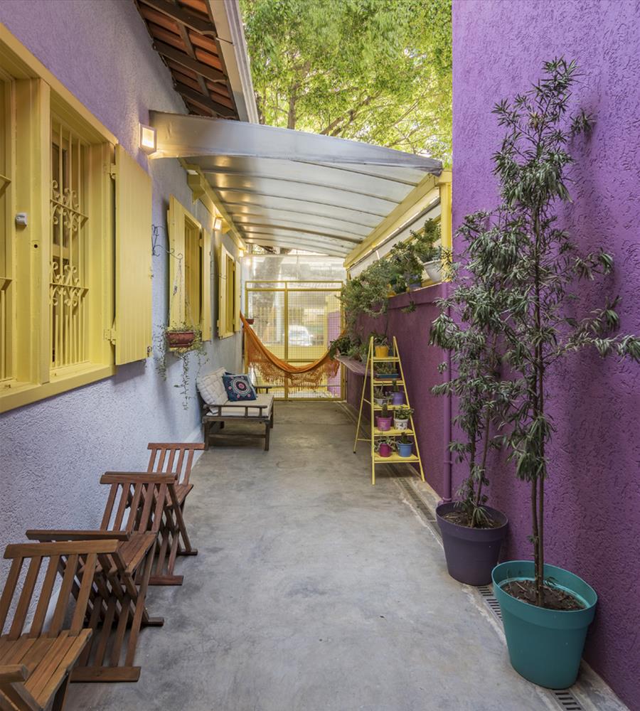 Caso não queira utilizar o lilás em paredes ou revestimentos, uma dica é trabalhar com a tonalidade em objetos de decoração usados na parte externa.