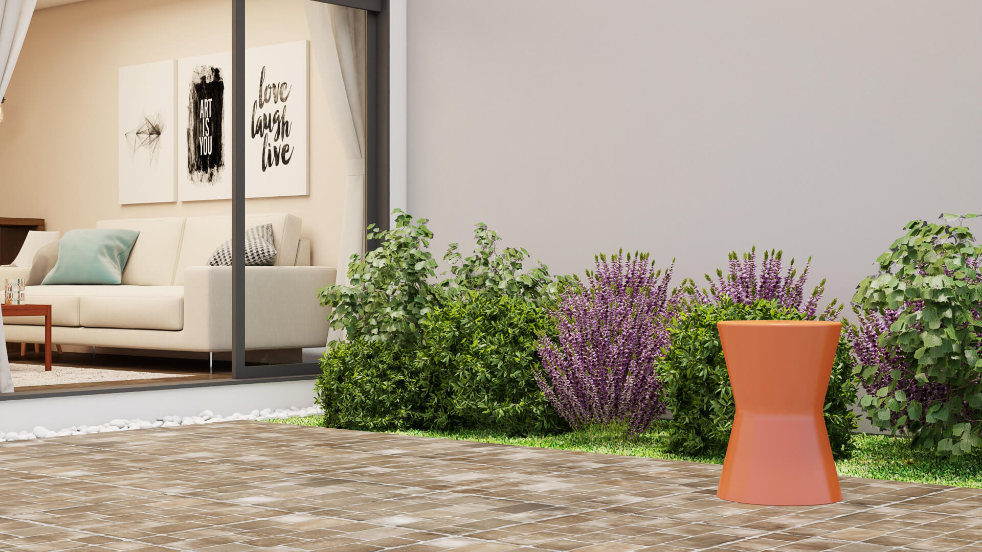 Essa é uma tendência que tem a ver com a valorização de tons naturais. Ela foge um pouco do óbvio do bege e do marrom, bem como de tons de verde, garantindo mais cor para espaços externos.