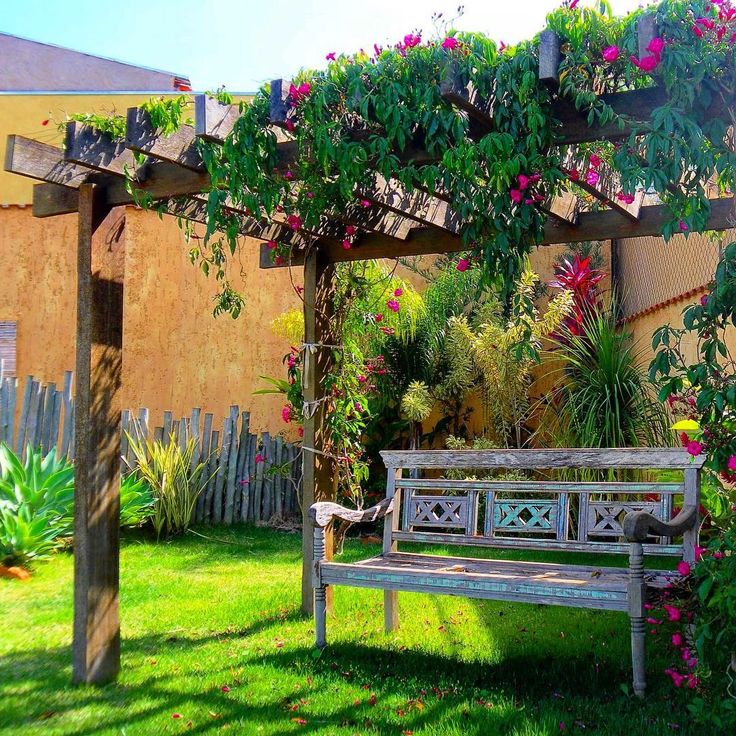 Os pergolados, com suas estruturas de madeira ou metal, podem ser adornados com plantas trepadeiras, como jasmim ou glicínia, criando um ambiente acolhedor e fresco.